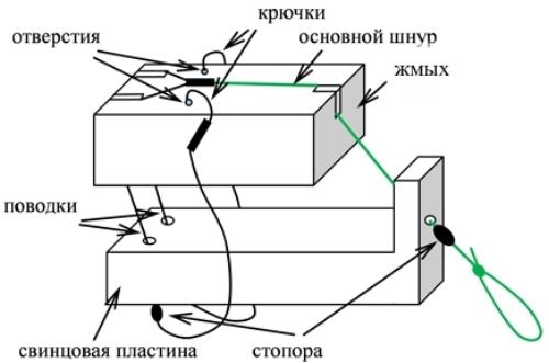 - Прочная монофильная леска (во избежание обрывов при зацепах);