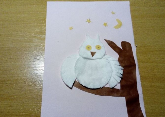 - лист картона синего, черного или фиолетового цвета – для контраста с белым оперением совы;