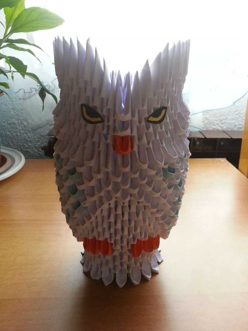 Объемную сову оригами, сделанную своими руками можно добавить в свою коллекцию оригинальных поделок хенд-мейд.