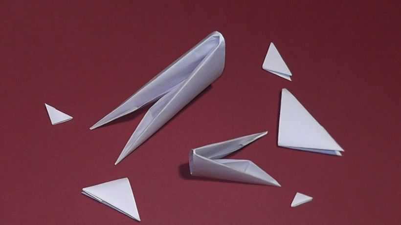 Понадобится бумага двух цветов: черная и белая. Из нее надо будет сделать модули для будущей фигурки. После того, как заготовки будут готовы, их надо собрать следующим образом.